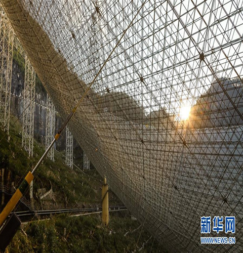 這是1月9日拍攝的FAST反射麵板(檢修期間拍攝)。 1月11日,被譽為(wei) “中國天眼”的500米口徑球麵射電望遠鏡通過國家驗收正式開放運行。 新華社發(韓旭攝)
