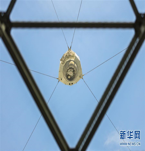 這是1月9日拍攝的FAST饋源艙(檢修期間拍攝)。 1月11日,被譽為(wei) “中國天眼”的500米口徑球麵射電望遠鏡通過國家驗收正式開放運行。 新華社發(韓旭攝)