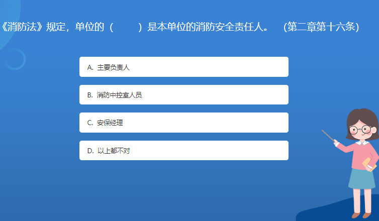 科普基地星空体育官网入口网站問答:《消防法》規定,單位的( )是本單位的消防安全責任人。 (第二章第十六條)