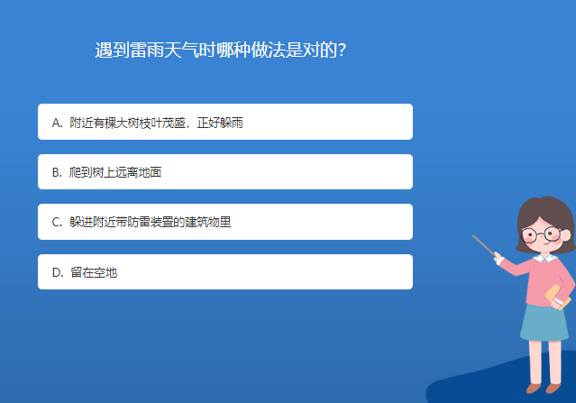 科普基地星空体育官网入口网站問答:遇到雷雨天氣時哪種做法是對的?