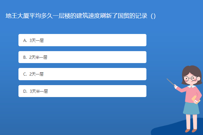 科普基地星空体育官网入口网站問答:地王大廈平均多久一層樓的建築速度刷新了國貿的記錄()