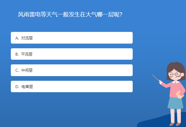科普基地星空体育官网入口网站問答:風雨雷電等天氣一般發生在大氣哪一層呢?