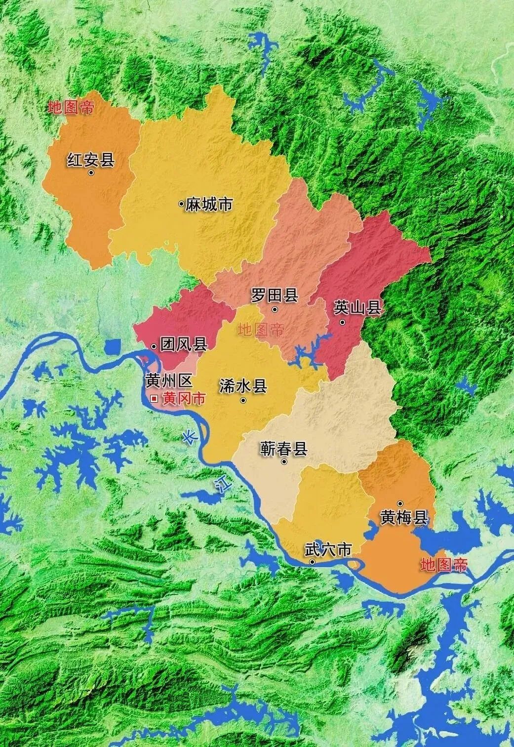 黃岡(gang) ,秦朝時稱作衡山,後又稱西陽、齊安,直到南朝的梁大同元年(535年),梁設置了黃州。隋朝時,在黃州內(nei) 設黃岡(gang) 縣,取名來源於(yu) 府城南的黃岡(gang) 山。而黃岡(gang) 山的得名,就來自古黃國。據《今縣釋名》:“西北有黃岡(gang) 山,因古黃國得名。”一直到1995年,經國務院批準,撤銷黃岡(gang) 地區和黃州市,設立地級黃岡(gang) 市,治所駐黃州,並建置團風縣和黃州區。黃岡(gang) 市地圖 來源:地圖帝