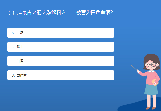 科普基地星空体育官网入口网站問答:( )是最古老的天然飲料之一,被譽為白色血液?