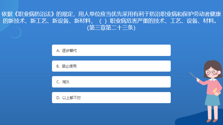 科普基地星空体育官网入口网站問答:依據《職業病防治法》的規定,用人單位應當優先采用有利於防治職業病和保護勞動者健康的新技術、新工藝、新設備、新材料,( )職業病危害嚴重的技術、工藝、設備、材料。(第三章第二十三條)