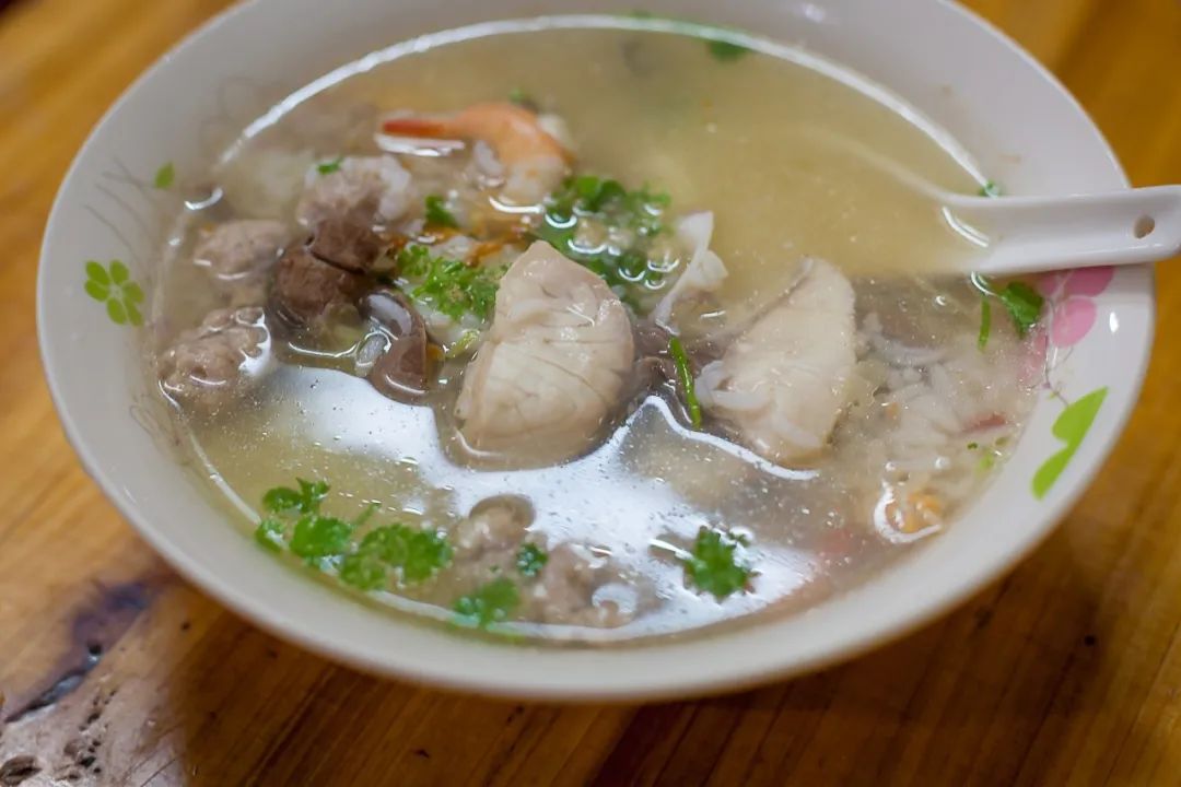 體(ti) 現漳州美食“融合”這個(ge) 特點的,除了麵,還有粥和飯——漳州人稱粥為(wei) mue,其實是沿用“糜”這個(ge) 古稱,“糜”古字從(cong) 米靡聲,意為(wei) “煮米使糜爛也”。
