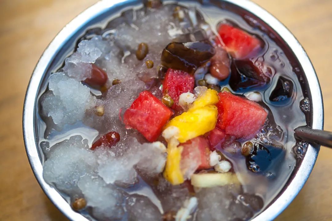 後來漳州人幹脆“任性”地隨意加料,芝麻圓、石花條、仙草塊乃至當地的西瓜、楊桃、菠蘿、草莓等等,說是“十果湯”也不為(wei) 過。再鋪上一層碎冰,夏天來一碗四果湯,簡直是漳州人專(zhuan) 屬的幸福。