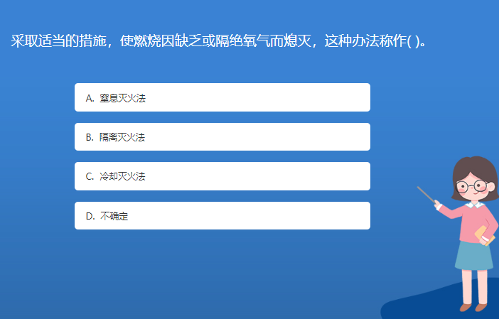 科普基地星空体育官网入口网站問答:采取適當的措施,使燃燒因缺乏或隔絕氧氣而熄滅,這種辦法稱作( )。