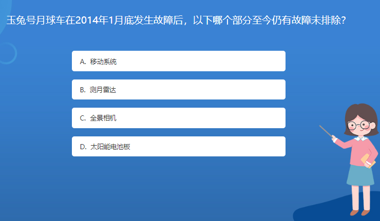 天文星空体育官网入口网站問答:玉兔號月球車在2014年1月底發生故障後,以下哪個部分至今仍有故障未排除?