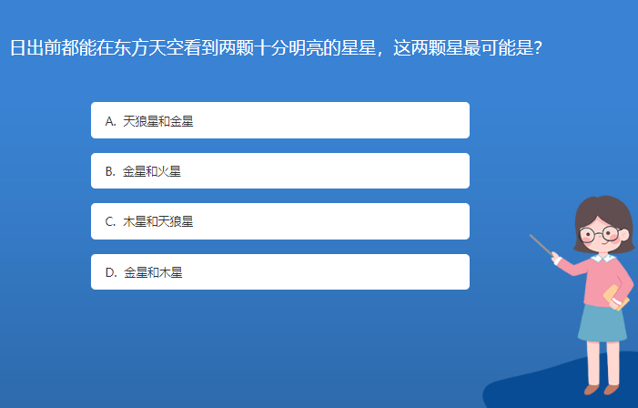 天文星空体育官网入口网站問答:日出前都能在東方天空看到兩顆十分明亮的星星,這兩顆星最可能是?