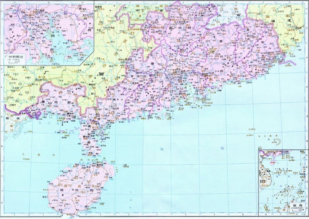 漢朝時,這裏主要屬於(yu) 交州,三國時期,交州分出廣州。當時的廣州作為(wei) 一級行政區,麵積很大,包括今天的粵桂兩(liang) 地大部分地區。明朝廣東(dong) 建省,此時廣東(dong) 省涵蓋今廣東(dong) 除懷集外的所有區域,以及北部灣和海南島,還有南海。建國後,廣東(dong) 以北部灣交換了懷集縣(懷集縣劃給廣東(dong) ,北部灣歸廣西),到了1988年,海南島建省,今廣東(dong) 省的省界才完全定下來。清朝的廣東(dong) 省