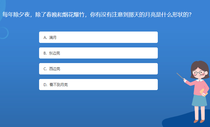 天文星空体育官网入口网站問答:每年除夕夜,除了春晚和煙花爆竹,你有沒有注意到那天的月亮是什麽形狀的?