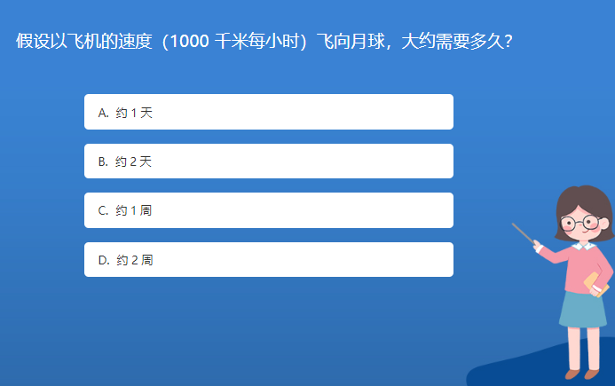 天文星空体育官网入口网站問答:假設以飛機的速度(1000 千米每小時)飛向月球,大約需要多久?