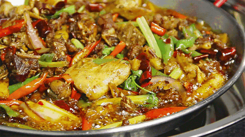 鍋內(nei) 紅油沸騰,鍋外喊聲震堂