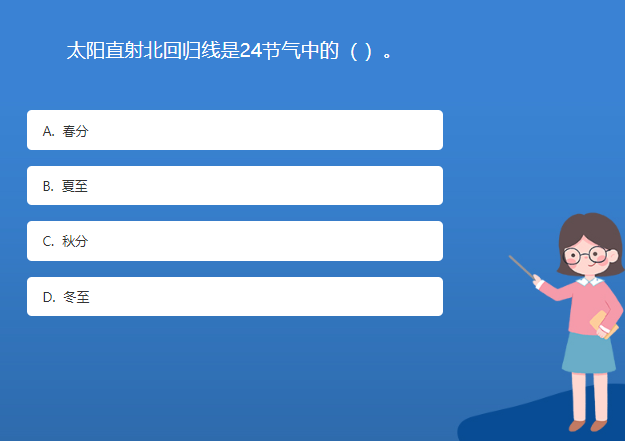 天文星空体育官网入口网站問答:太陽直射北回歸線是24節氣中的( )。