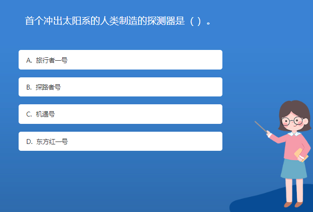 天文星空体育官网入口网站問答:首個衝出太陽係的人類製造的探測器是( )。