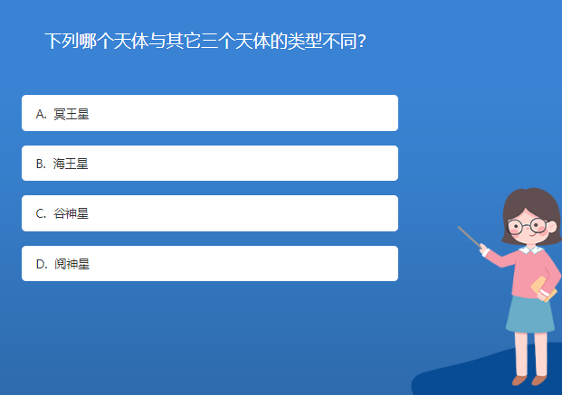 天文星空体育官网入口网站問答:下列哪個天體與其它三個天體的類型不同?