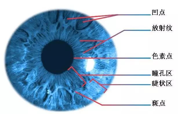 人眼的外觀由鞏膜、虹膜、瞳孔三部分構成,鞏膜即眼球外圍的白色部分,眼睛中心為(wei) 瞳孔部分,虹膜位於(yu) 鞏膜和瞳孔之間,包含了最豐(feng) 富的紋理信息。外觀上看,虹膜由許多腺窩、皺褶、色素斑等構成,是人體(ti) 中最獨特的結構之一。