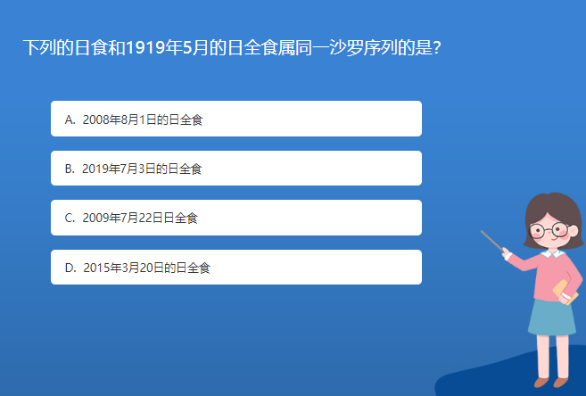 天文星空体育官网入口网站問答:下列的日食和1919年5月的日全食屬同一沙羅序列的是?