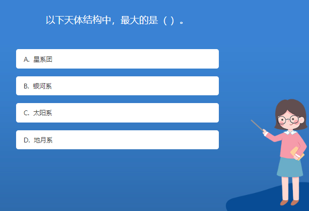 天文星空体育官网入口网站問答:以下天體結構中,最大的是( )。