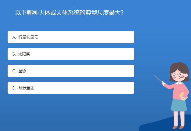 天文星空体育官网入口网站問答:以下哪種天體或天體係統的典型尺度最大?