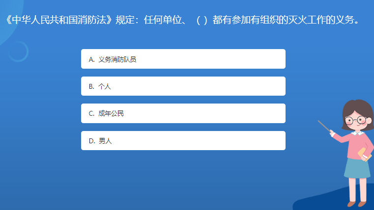 科普基地星空体育官网入口网站問答:《中華人民共和國消防法》規定:任何單位、( )都有參加有組織的滅火工作的義務。
