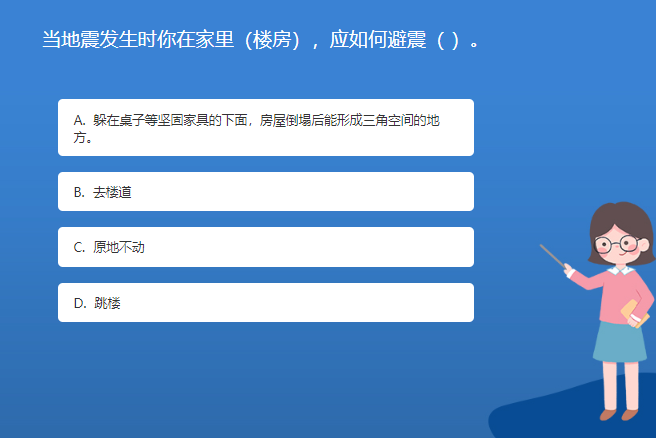 科普星空体育官网入口网站問答:當地震發生時你在家裏(樓房),應如何避震( )。