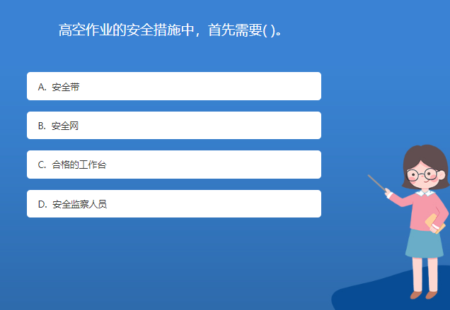 科普星空体育官网入口网站問答:高空作業的安全措施中,首先需要( )。