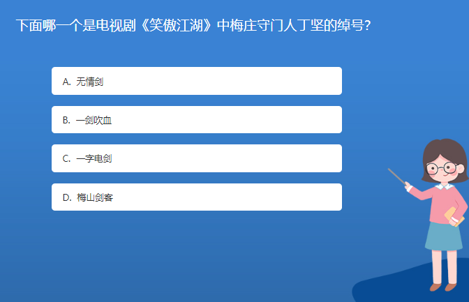 科普星空体育官网入口网站問答:下麵哪一個是電視劇《笑傲江湖》中梅莊守門人丁堅的綽號?