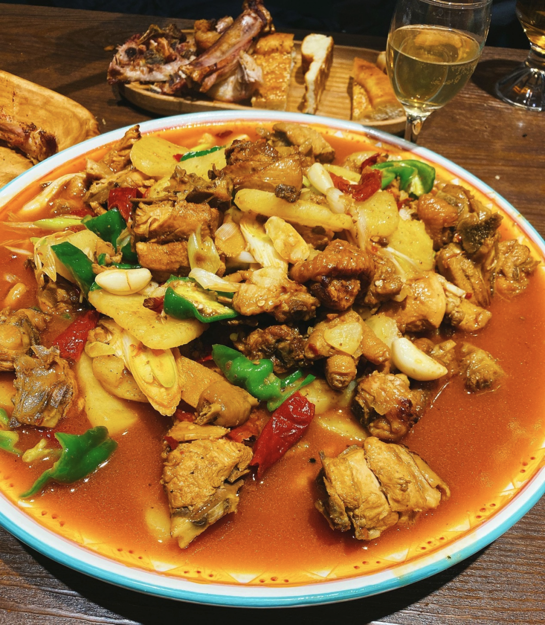 大盤雞大概是口裏人認知度最高的新疆菜。菜如其名,盤子大、雞塊大、土豆大、辣椒大、洋蔥大、蔥塊大。