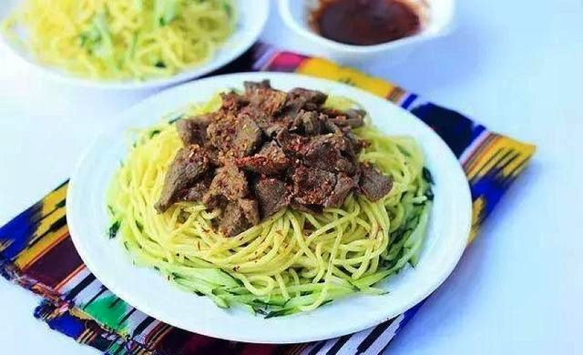 黃麵就是新疆的涼麵,色黃是因為(wei) 加了堿性的蓬灰水。雖說是涼麵,但一年四季都可以吃。昌吉地區極愛將其作為(wei) 早餐。