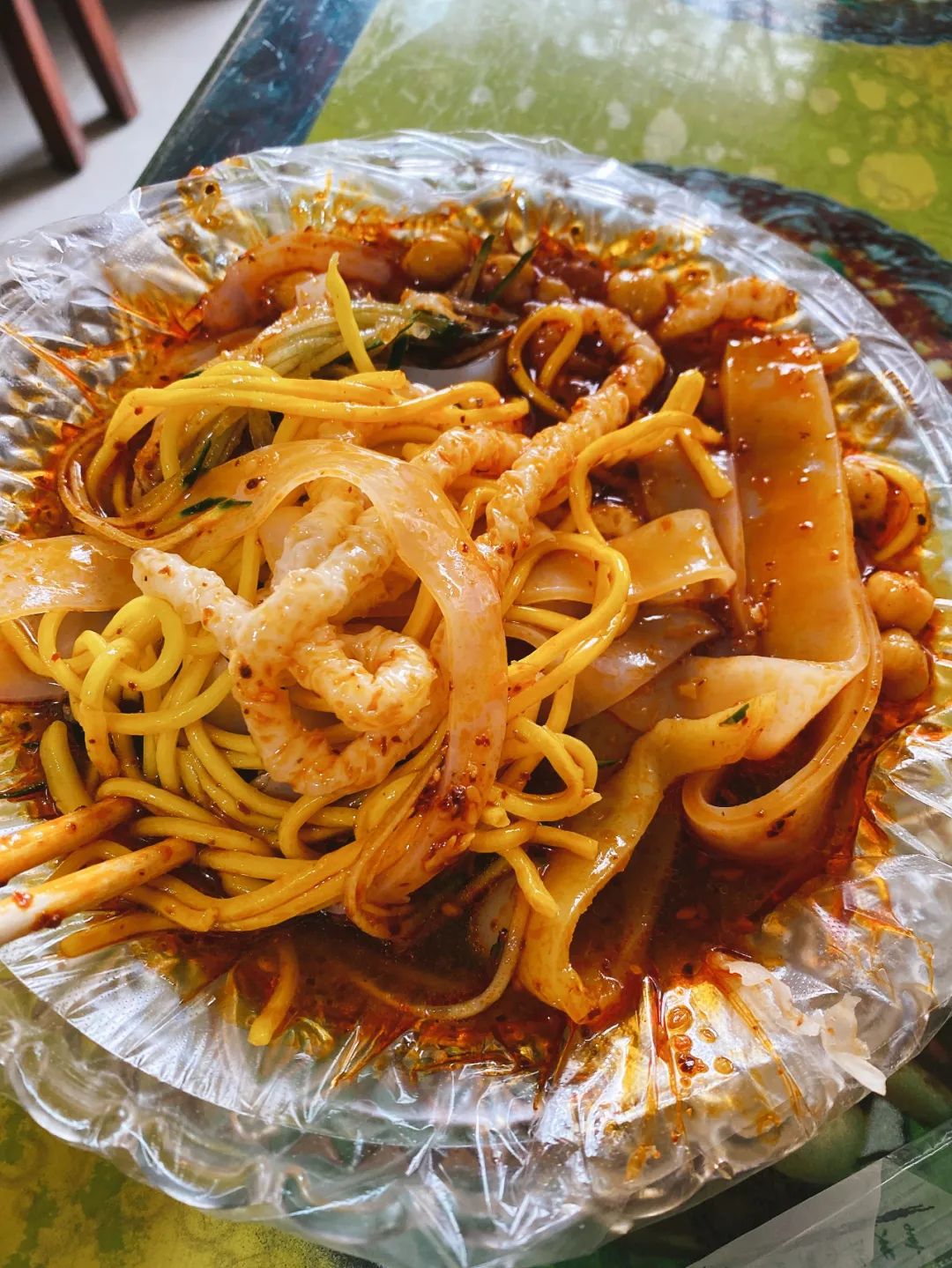 黃麵也可和涼皮、牛筋麵兩(liang) 摻或者三摻。那仁