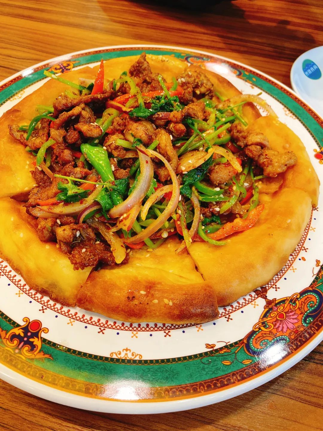 得天獨厚的自然條件,也孕育了新疆小麥絕佳的麵粉品質——全年光照時間長達2500-3500小時、平均晝夜溫差超過15℃。這點以毒舌聞名的美國旅行作家保羅·索魯深有體(ti) 會(hui) 。他在《在中國大陸上》寫(xie) 道:“烏(wu) 魯木齊仿佛處於(yu) 一個(ge) 小小的時間隧道中,所有的事情都要慢半拍。早餐要到九點半才吃,晚飯則要等到夜裏九點半。每天晚上十點半,太陽依舊能夠鑽出雲(yun) 層,燦爛的陽光要等到十一點以後才有所收斂。到了半夜,整個(ge) 地方又忽然變得冷颼颼的。”▲小份饢包肉 圖/三個(ge) 料理人