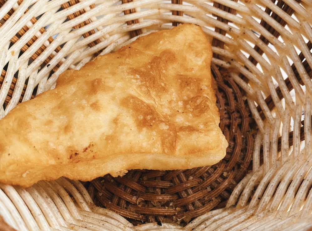 包爾薩克蘸著著奶茶吃最香。在克拉瑪依,槍槍還嚐試了包爾薩可配酸菜的吃法。