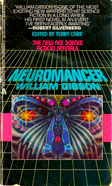 這個(ge) 詞的真正流行,是因為(wei) 吉布森兩(liang) 年後的作品《神經漫遊者》(Neuromancer)。這個(ge) 書(shu) 名是一個(ge) 三重雙關(guan) 語,含義(yi) 為(wei) nervous system(神經係統)、necromancer(死靈法師)和 new romancer(新浪漫故事作家)。
