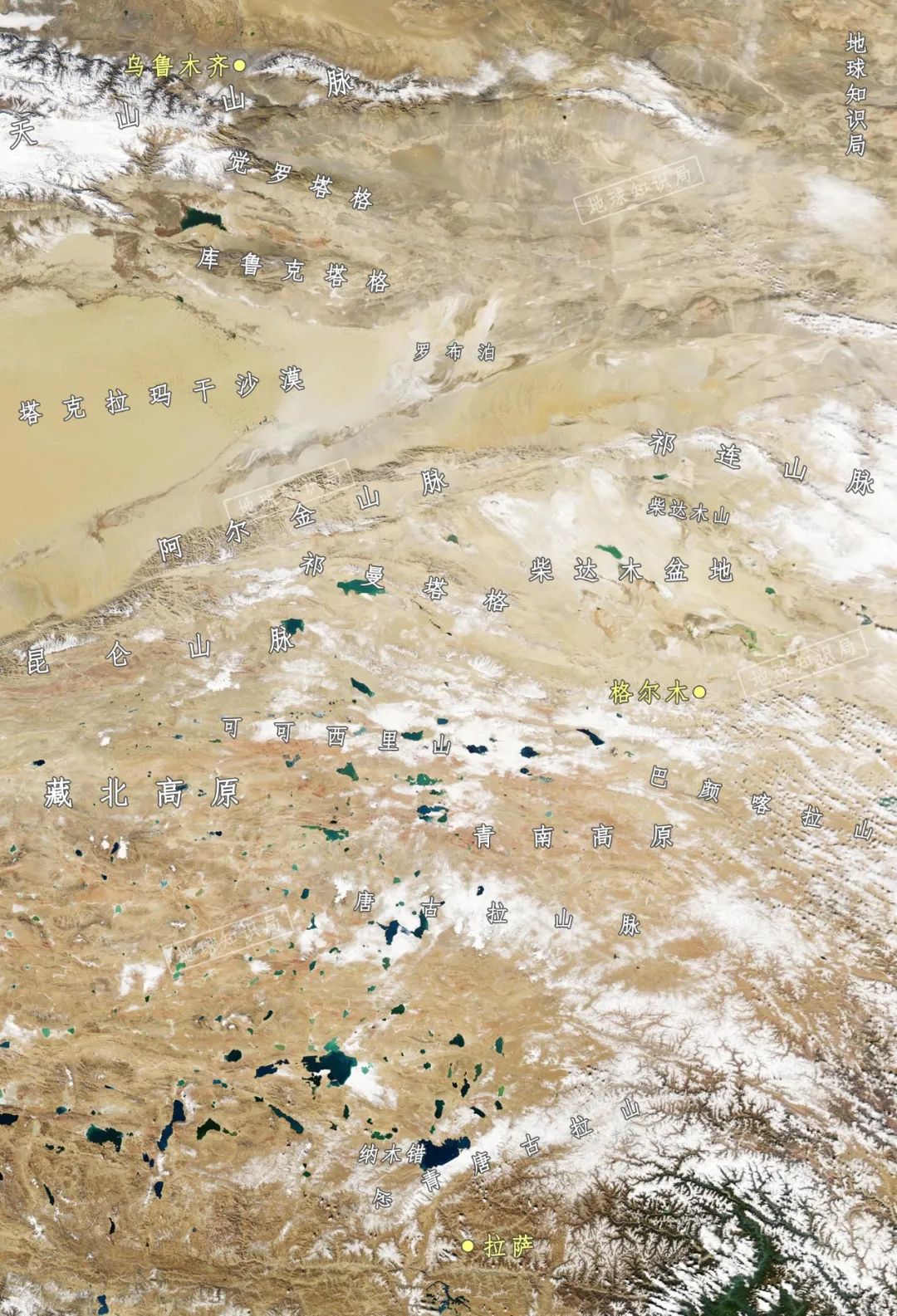 青海省的西北部是大名鼎鼎的柴達木盆地。這裏在4000萬(wan) 年前還是一片汪洋大海(特提斯海),經過數千萬(wan) 年的地質作用,這裏成為(wei) 深居內(nei) 陸的巨大湖泊,內(nei) 陸地區的蒸發量遠大於(yu) 其降雨量,湖泊的麵積不斷縮小,終於(yu) 形成了現今被昆侖(lun) 山、祁連山、阿爾金山和青海南山封閉環抱的巨大盆地。