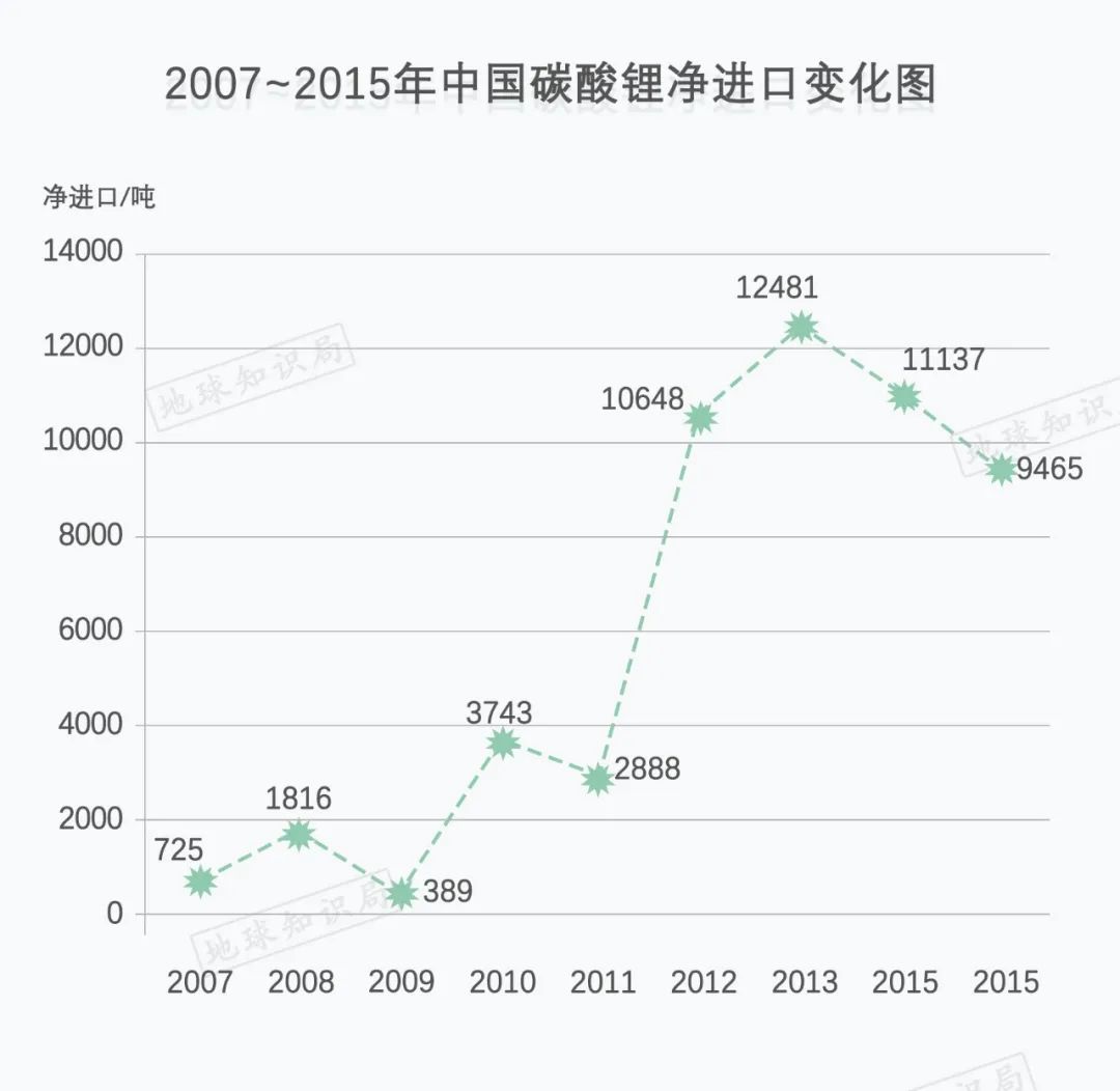 2007-2015年我國碳酸鋰進口變化