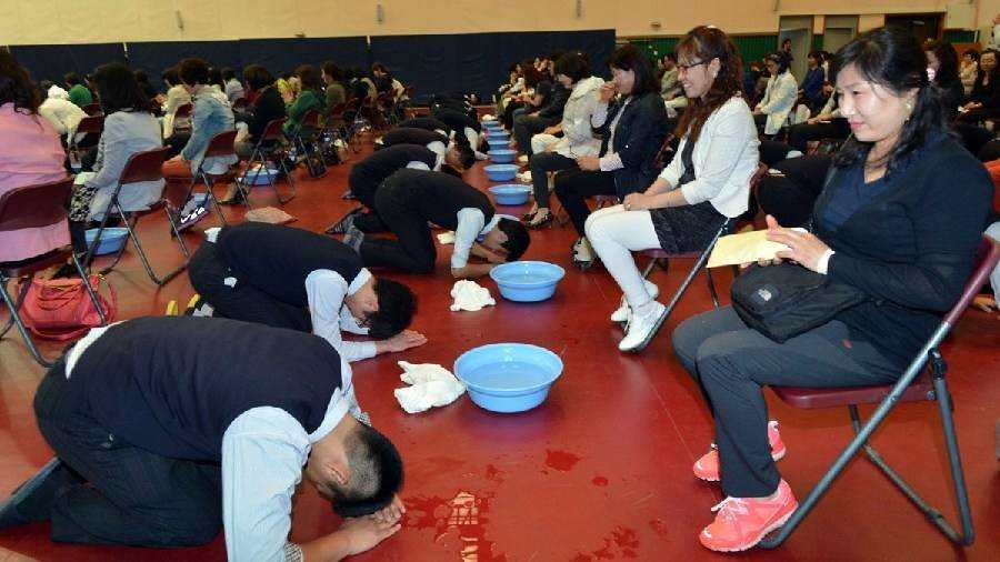 · 2015 年 3 月 31 日,韓國首爾明知大學的校長和教授們(men) 為(wei) 學生洗腳繁瑣的潔淨