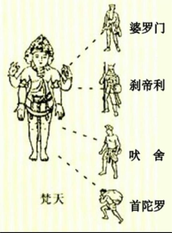 · 一張根據《梨俱吠陀》繪製的瓦爾納階序圖,曾長期出現在我國曆史課本裏,雖然它並不能代表種姓製度的現實運作形態試想一下,受此類「潔淨」觀念影響的地區,用手幫他人洗腳意味著什麽(me) ?