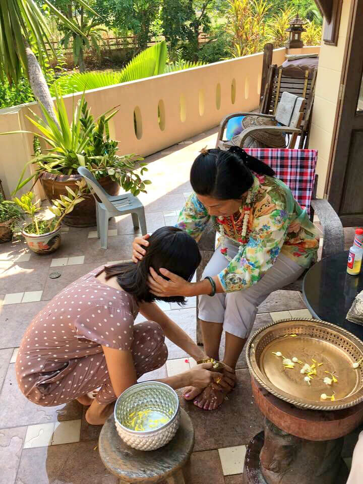 參照泰國另一洗腳民俗:晚輩在宋幹節期間為(wei) 長者、父母洗腳以祈求祝福,足以見得新娘在儀(yi) 式中的卑下地位。