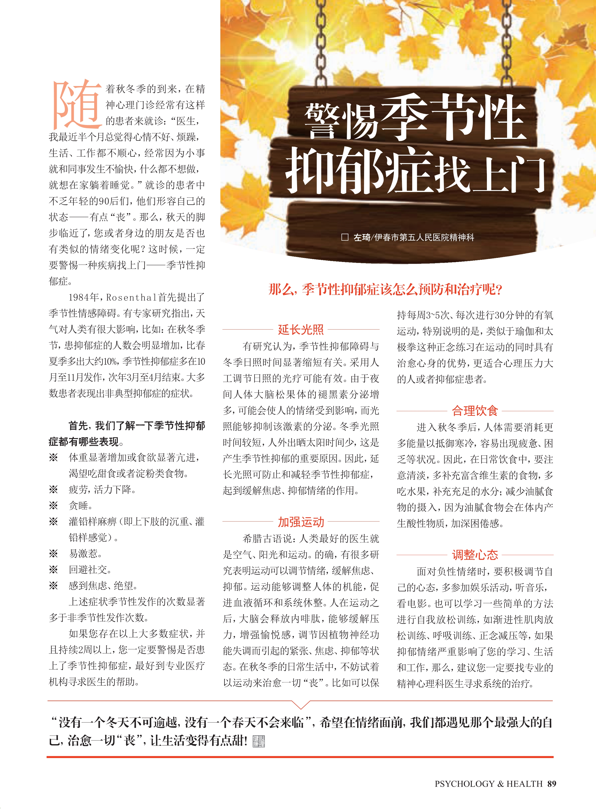 名刊科普精選:《心理與健康》——警惕季節性抑鬱症找上門