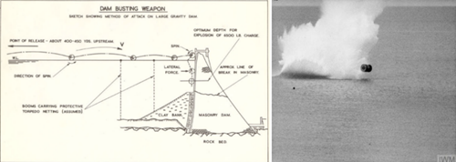 二戰時期,盟軍(jun) 希望攻擊德國魯爾工業(ye) 區內(nei) 的水壩,在嚴(yan) 密防守下通常的高空投彈和水下魚雷攻擊都一籌莫展。英國發明家威利斯依據打水漂現象,發明了一種彈跳彈,飛機投下的炸彈在水麵上跳過防禦工事後在大壩上爆炸,最終盟軍(jun) 采用這種方法成功摧毀了德國境內(nei) 的三座大壩。