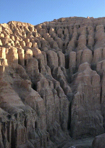 這裏的紅色砂岩褶皺構造由溝口向內(nei) 綿延展布,形成了“千佛集聚”的場景。自然精心雕琢的“菩薩”、“羅漢”自西向東(dong) 崛起,錯落有致地“排列”在懸崖峭壁之上。