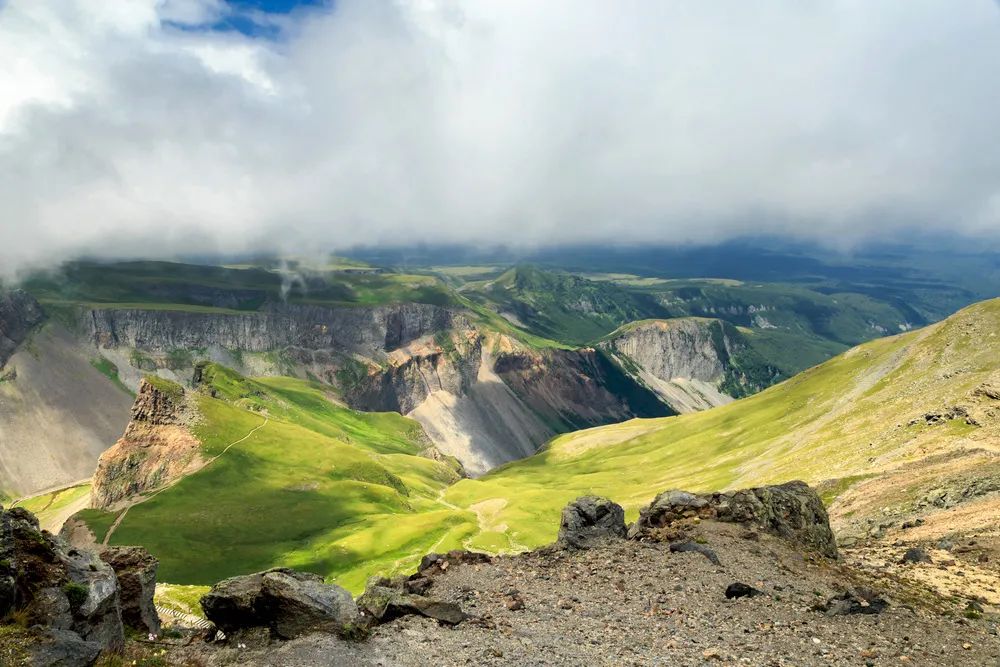 火山噴發的猛烈,震爆了火山口的錐體(ti) 。