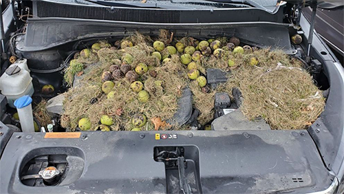 還有一種可能,是鬆鼠把你的車,當成囤年貨的好地方了。