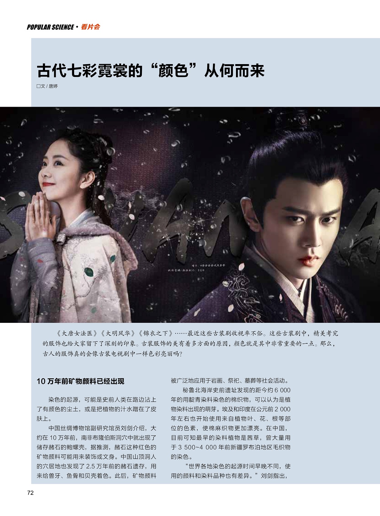 名刊科普精選:《科學大眾》——古代七彩霓裳的“顏色”從何而來