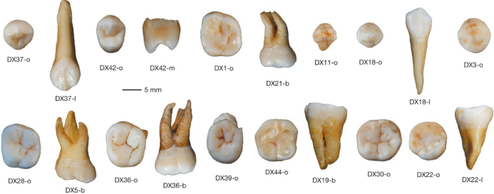 福岩洞中部分出土的牙齒。雖然看起來與(yu) 現代人的牙齒模樣十分相似,但它們(men) 確實年代久遠。[2]