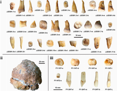 李輝等人本次發掘到的化石樣本,其中(i)為(wei) 楊家坡洞牙齒化石,(iii)為(wei) 福岩洞牙齒化石。