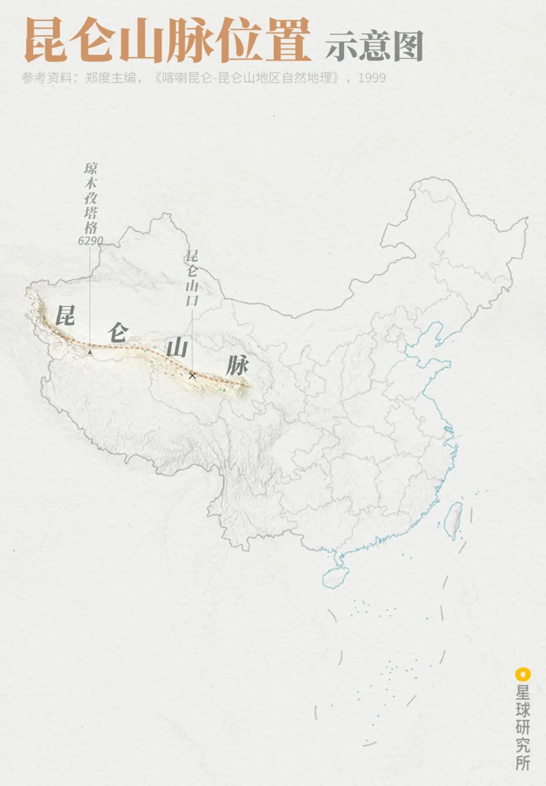 現代的昆侖(lun) 山脈位於(yu) 中國西部夾在新疆和西藏之間從(cong) 西向東(dong) 延伸進入青海綿延2500千米大致可分為(wei) 東(dong) 、中、西三段(昆侖(lun) 山脈在中國的位置及分段,昆侖(lun) 山口以東(dong) 為(wei) 東(dong) 段,瓊木孜塔格以西為(wei) 西段,中間為(wei) 中段,製圖@鞏向傑&趙榜/星球研究所)▼