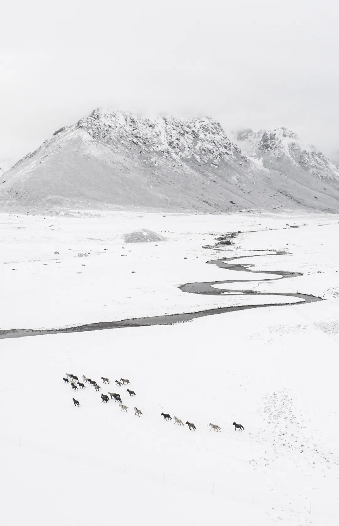 自古以來便不缺少人類活動北麓有一連串的綠洲王國東(dong) 部青海一帶則有遊牧民族活動(巴顏喀拉山年保玉則峰附近馬場內(nei) 的馬,攝影師@薑曦)▼